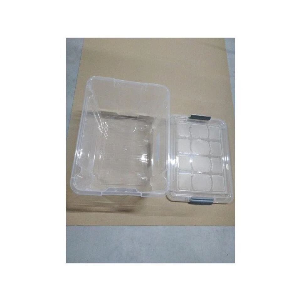 1x stuks Opslagbakken/organizers met deksel 16 liter 40 cm. Transparante opbergbakken met deksel welke is voorzien van grijze sluitclips. Handig voor het opbergen van spulletjes. Inhoud: ca. 16 liter. Formaat: 40 x 30 x 21 cm. Materiaal: kunststof (plastic). Organizers/opbergbakken voor badkamer, huis of kantoor.
