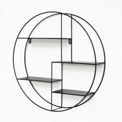Zwart Metalen Wandrek Met 4 Houten Plankjes – Rechthoek – 55x45x11 Cm