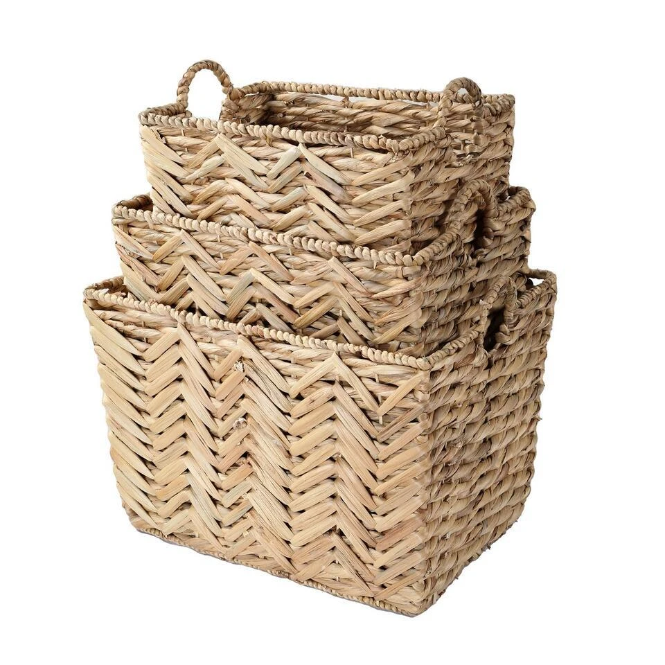 Ontdek deze waterhyacint mand! Het stelt je in staat om je spullen naar wens te organiseren. Het middelgrote formaat is perfect voor elke ruimte, waar je gemakkelijk je objecten en benodigdheden kunt opbergen. Het strakke ontwerp past in elke kamer, of het nu in een kleedkamer of woonkamer is, deze mand voegt een natuurlijk tintje toe aan je interieur.Productkenmerken:Fantasievol vlechtwerk.Metalen structuur.2 ronde handgrepen.Productafmetingen: Lengte 46 cm x Breedte 33 cm x Hoogte 32 cm – Nettogewicht: 1,7 kg.Verpakkingsafmetingen: Pakket nr. 1: Lengte 54 cm x Hoogte 43 cm x Diepte 40 cm – Bruto gewicht: 6,5 kg.