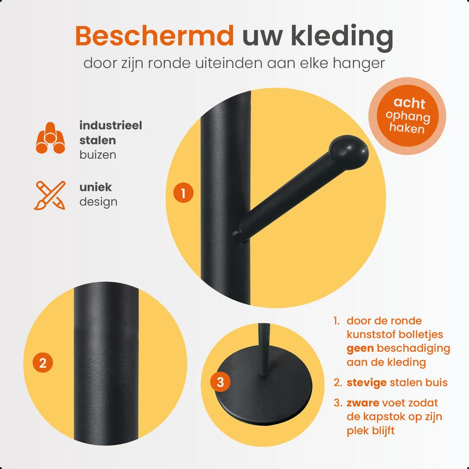 - Geschikt voor het ophangen van jassen, hoeden en andere kledingstukken