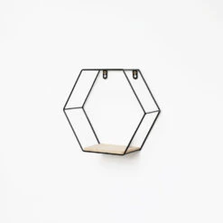 Set Van 3 Zeshoekige Metalen Wandrekjes Met Houten Plankje – Zwart