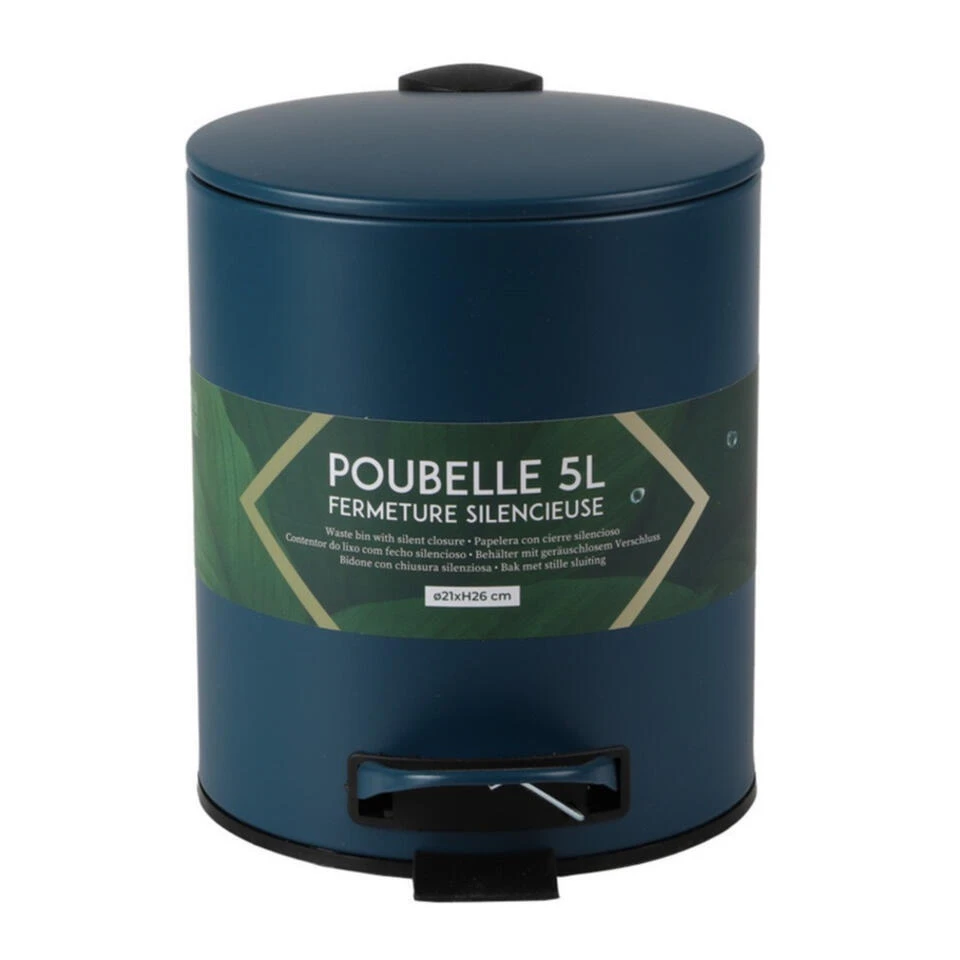 Pedaalemmer/prullenbak model Toulon voor in de badkamer en/of toilet, klein model met inhoud 5 liter. Kleur: donkerblauw. Deze prullenbak is gemaakt van metaal en de deksel heeft een soft-close sluit systeem. Afmetingen zijn ongeveer L21 x H26 cm. Deze kleine pedaalemmers hebben een handige uitneembare binnenbak gemaakt van gerecycled plastic. Zeer goede kwaliteit materialen zijn gebruikt om deze kleine pedaalemmer een luxe uitstraling te geven.