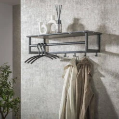 MATERIAAL: Deze kapstok is gemaakt van metaal met een zwart matte poedercoat. Het rek bevat achttien haken voor o.a. jassen en sjaals en drie legplanken voor schoenen en hoeden. Deze kapstok bied ruimte voor minimaal 6 paar schoenen en 18 jassen waaronder ook de jassen voor de kinderen. Zo kom je altijd thuis is een opgeruimd huis!