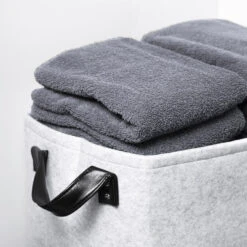 QUVIO Opbergmand / Organizer Vilt Rechthoek Groot – Gemêleerd Zwart – Set Van 2