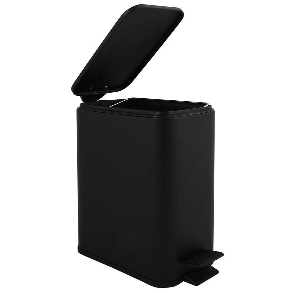 Pedaalemmer/prullenbak model Paris voor in de badkamer en/of toilet, klein model met inhoud 5 liter. Kleur: zwart. Deze prullenbak is gemaakt van metaal en de deksel heeft een soft-close sluit systeem. Afmetingen zijn ongeveer L28 x B14 x H29 cm. Deze kleine pedaalemmers hebben een handige uitneembare binnenbak gemaakt van gerecycled plastic. Zeer goede kwaliteit materialen zijn gebruikt om deze kleine pedaalemmer een luxe uitstraling te geven.