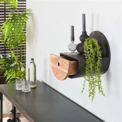 Industrieel Rond Wandrek Hout En Metaal Tim Ø 40 Cm – 25x40x40 Cm – Hout – Zwart